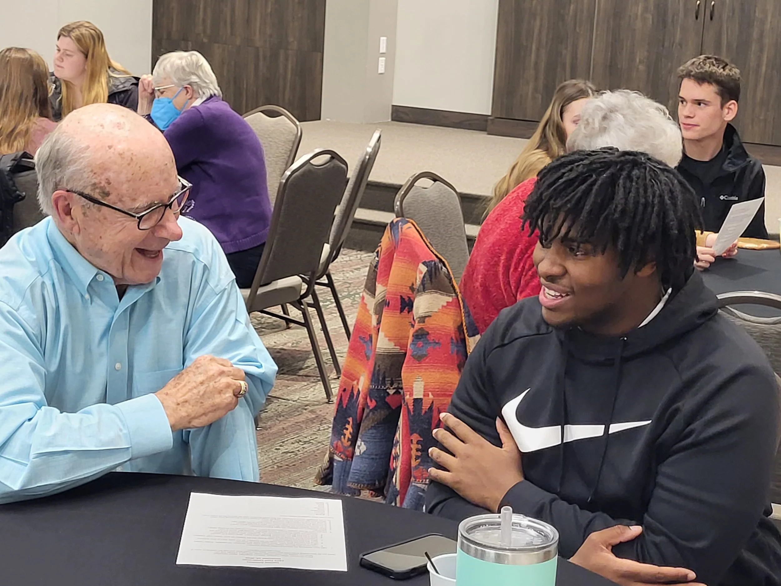 At the corner of one table, Barbara Cooper of Willowwood and Cedar Falls High senior Zoey Carbiener smiled and laughed out loud as they looked at photos on Zoey’s phone and listened intently to each other.