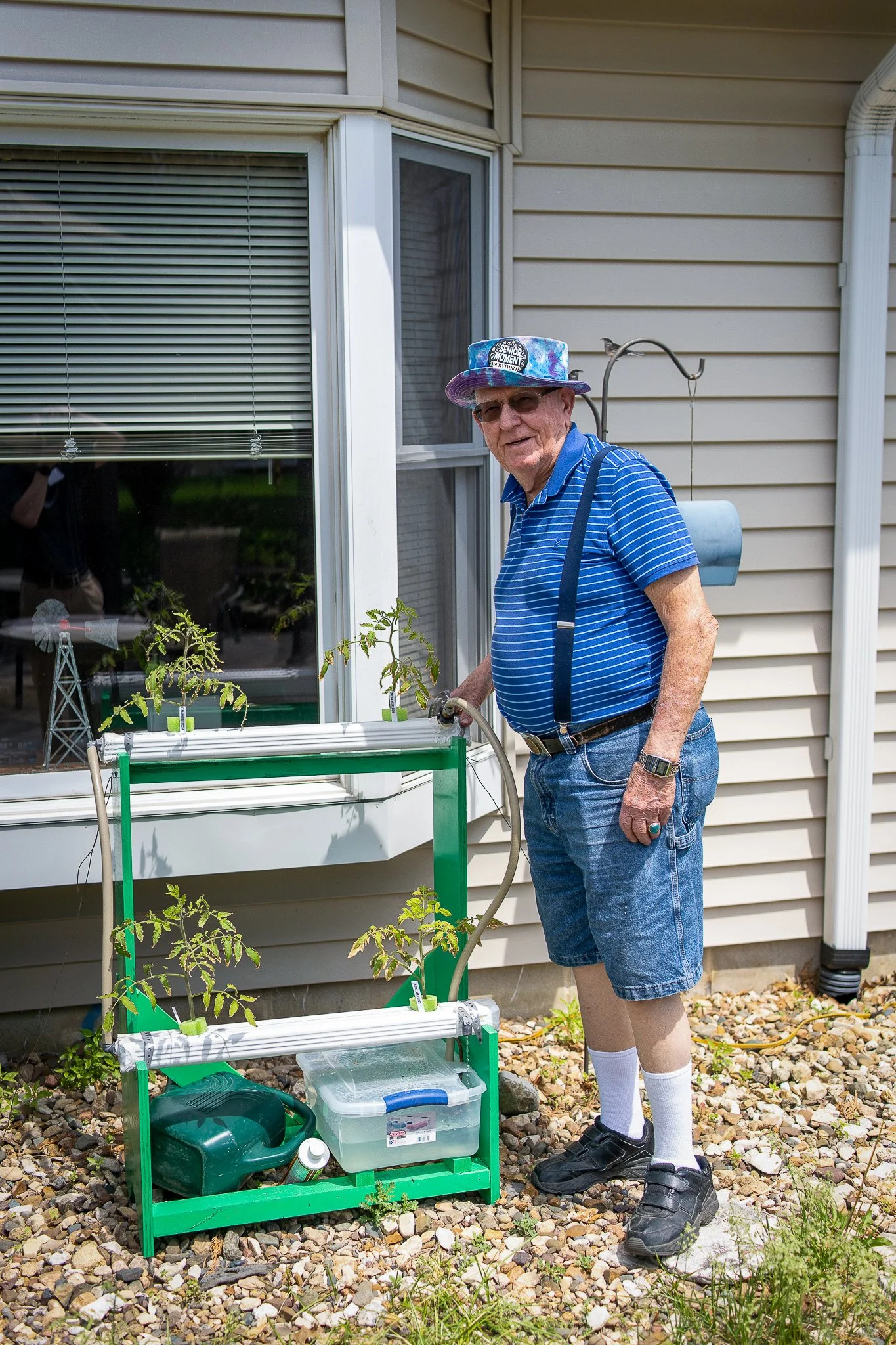 The investment appears to be worth it: Paul’s tomatoes more than doubled in size the first month. Next spring, he may take his system inside and start the tomatoes a little earlier.