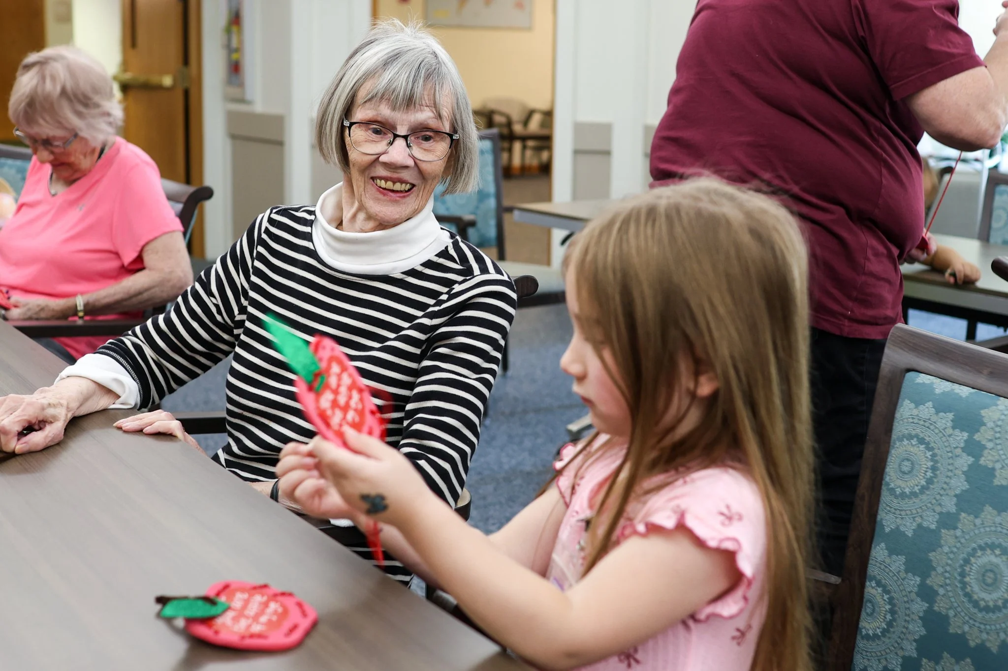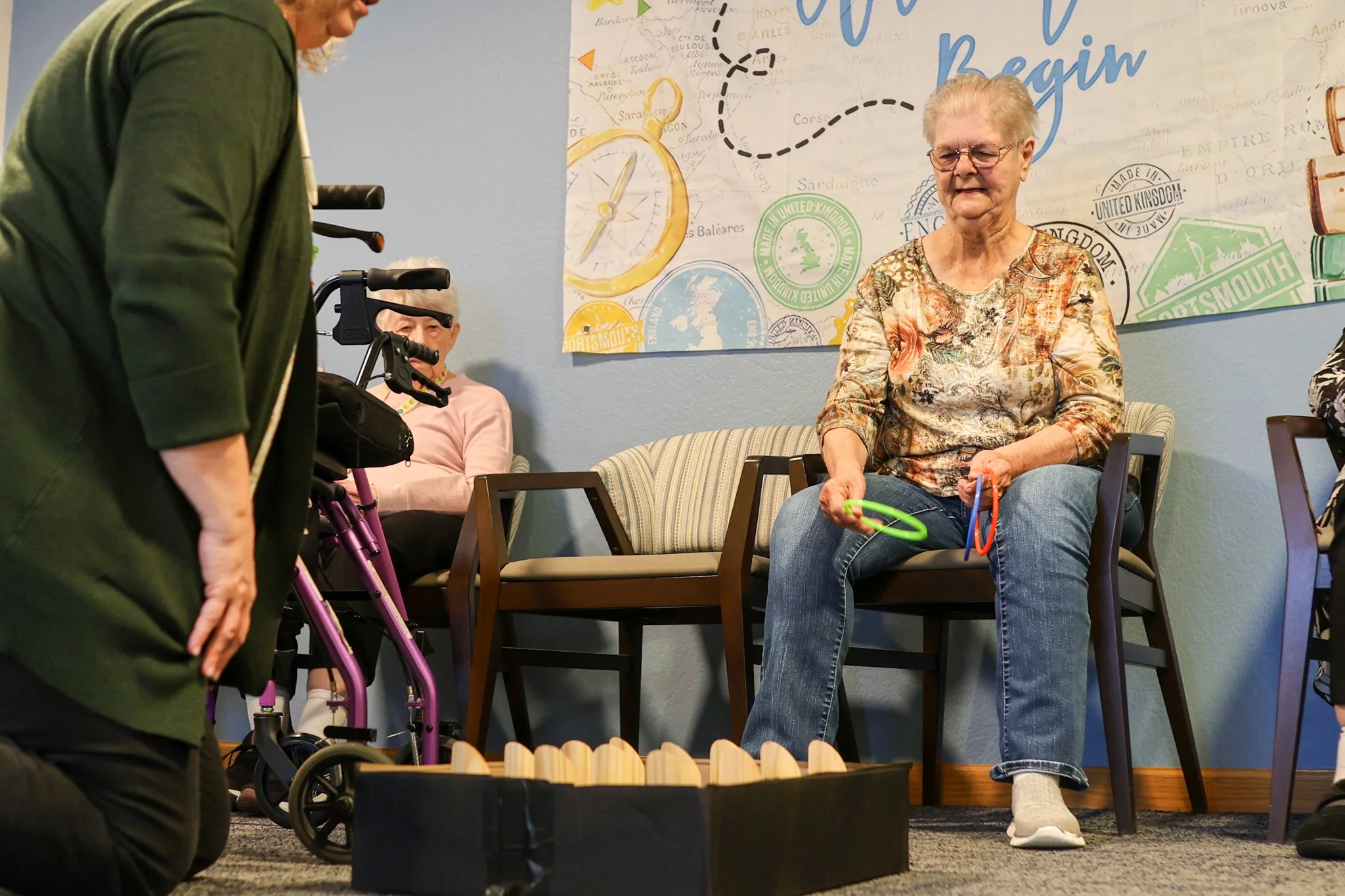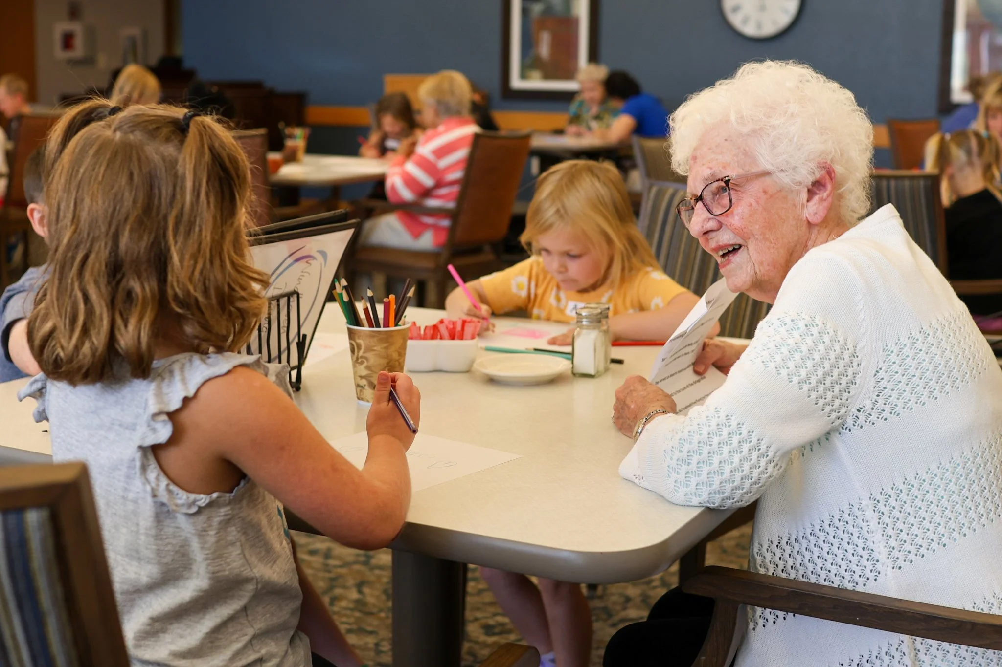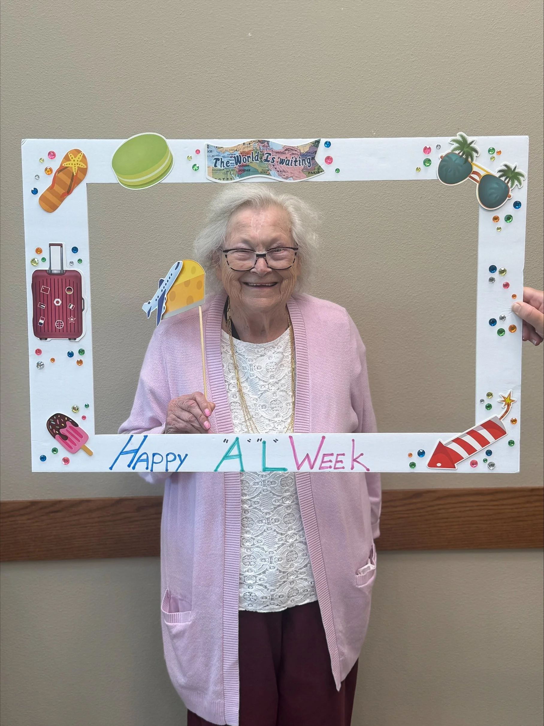 At Windhaven and Stanard Family Assisted Living, residents enjoyed a week-long journey “around the world.” They laughed and connected through games like Around the World Bingo and balloon volleyball, and gathered for a screening of the classic film Around the World in 80 Days. A highlight of the week came when the Cedar Heights Kindergarteners visited. Residents read stories aloud, and the children created artwork inspired by the tales they heard, creating a beautiful intergenerational exchange of imagination and learning.