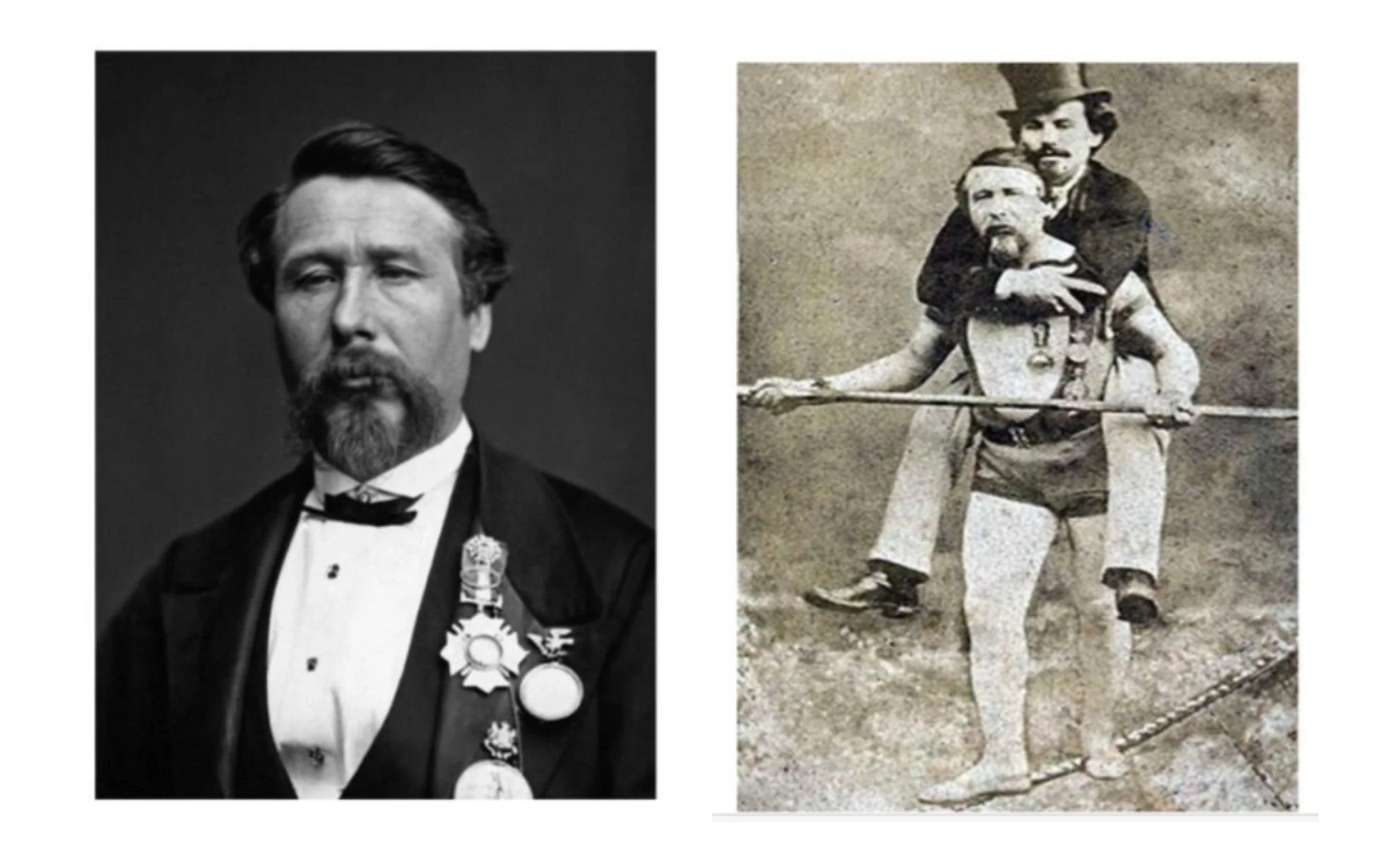 Right: Carrying his manager, Harry Colcord, Blondin illustrates the kind of trust that goes beyond belief—placing full confidence in another.