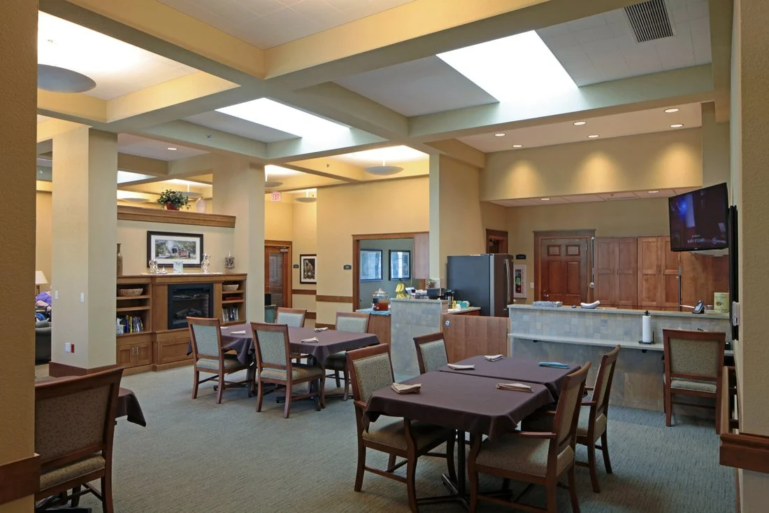 Our nursing care, skilled care, and memory care are designed as a small group of residents living in a family-style home, with a small group of close-knit caregivers who become family.